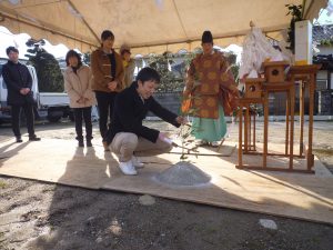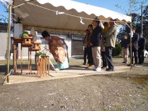 家づくりのこと 茶木 均 2017.02.26 滑川市 M様 地鎮祭 滑川市 M様の地鎮祭が行われました。晴天で上棟祭にふさわしい良い天気です。ちょうどこの日は地元の町内の祭りと重なり、木の香も顔なじみの神主さんも忙しそうで(^-^) ゆうとクンもご機嫌で地鎮祭を終えることが出来ました(^-^) これから地盤調査、着工へと進んでまいります。 M様、どうぞよろしくお願いいたします。